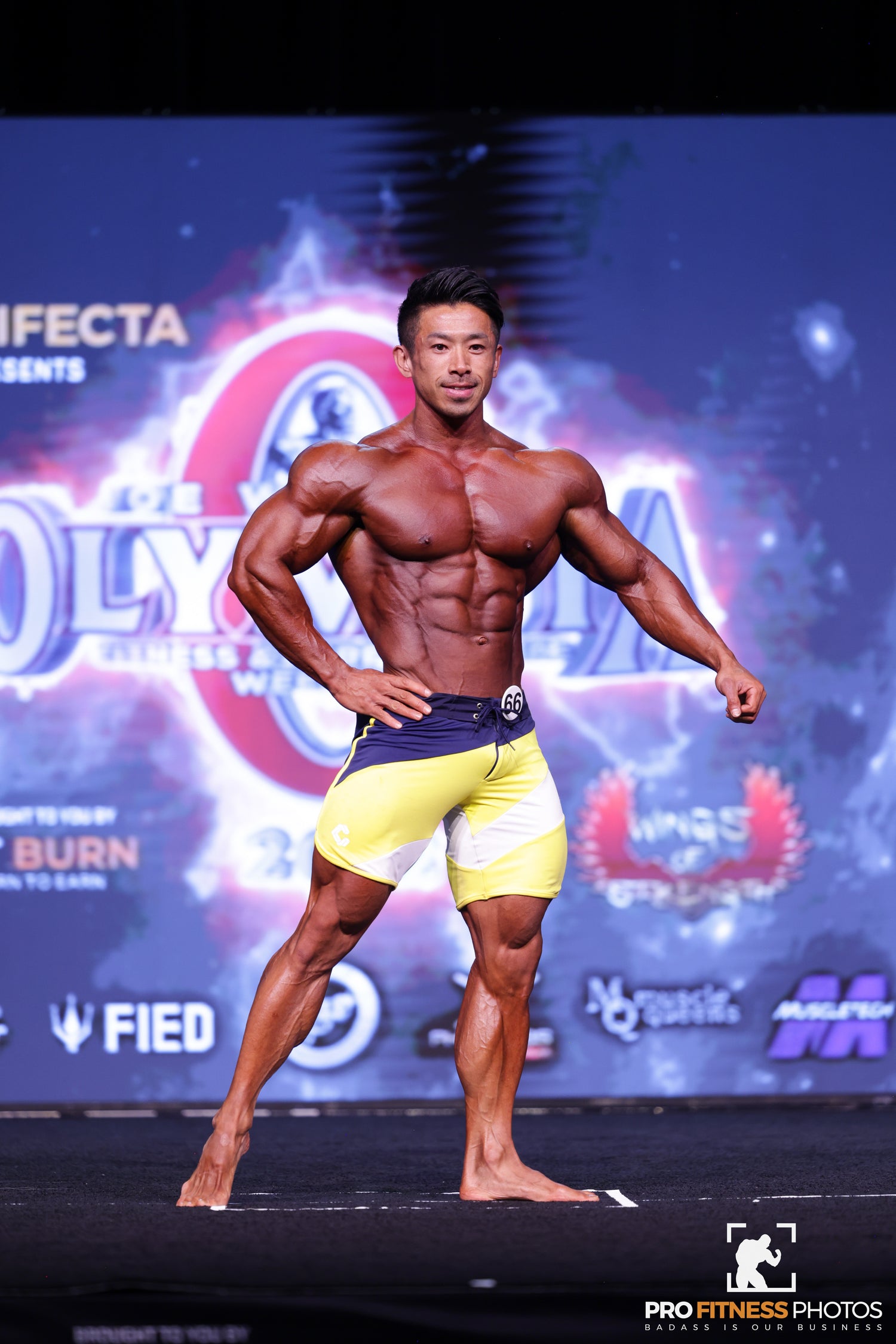 圧倒的な筋量、完成度の高いコンディション、そして舞台での揺るぎない存在感。